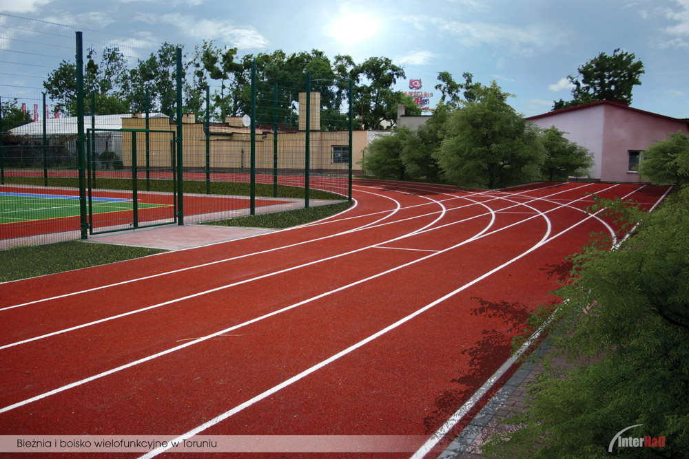 Diese Laufbahn für die Leichtathletik haben wir für die Stadt Wieliczka mit Conipur M-System erstellt. Dabei handelt es sich um den Belag, auf dem die Leichtathletikwettbewerbe bei den Olympischen Spielen und den Weltmeisterschaften der Leichtathletik stattfinden.